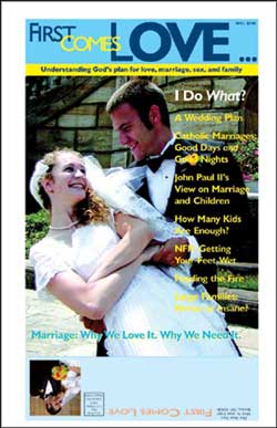 Here is everything you wanted to tell your married child, and everything you wish your parents had told you about marriage. First Comes Love is a collection of the very best the Church has to offer to help couples have long and very happy marriages. Drawing from Popes John Paul II and Benedict XVI, Christopher West, Emily Sederstrand, Steve Wood, St John Chrysostom, and many others, this publication offers articles, quotes, personal testimonies, graphs, prayers, and recommendations. Subjects include finding the right mate, the blessings of children, the value of Natural Family Planning, how chastity works inside of marriage, and infertility; everything a young couple needs to get their marriage onto a solid foundation. Read