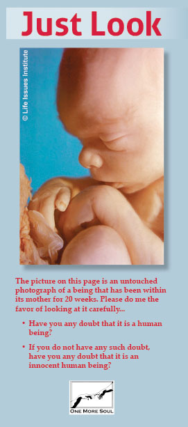 Cardinal Egan presents a beautiful picture of an unborn, 20 week old baby and challenges the viewer to see what is plainly displayed: an innocent human being whom our laws have unjustly put in danger of being killed. Read it in a printable form or web version.