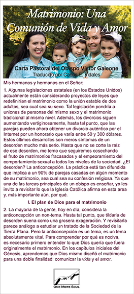 Senale aqui para leer Matrimonio: una Comunión de Vida y Amor en version para imprimir. En Ingles: Marriage: Communion of Life and Love.