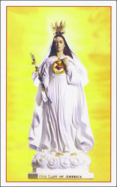 The front shows an image of Our Lady of America. With a prayer to Our Lady of America Patroness Of Our Land on the back. Size 3 1/2″ x 5 1/2″.